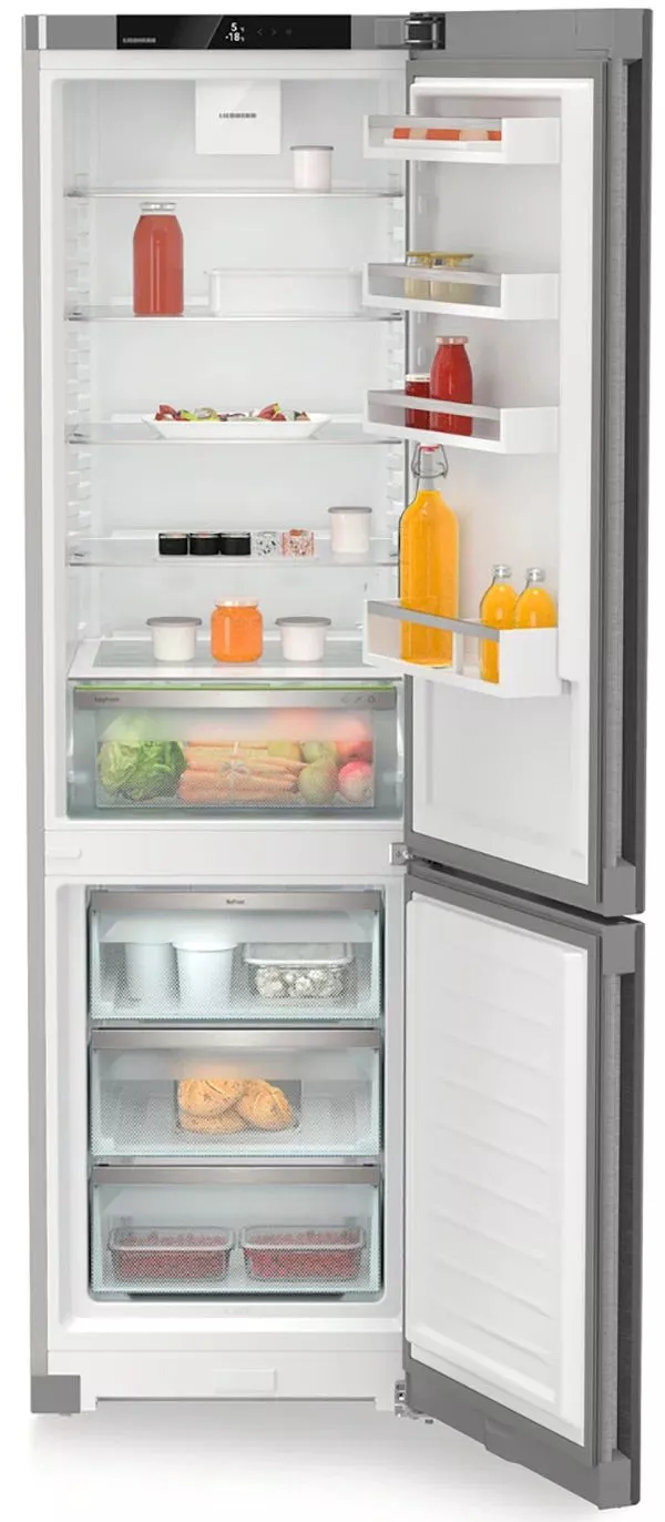 Liebherr CNsdc 5703-22 001 — двухкамерный холодильник для тех, кто ценит продуманную эргономику и аккуратный внешний вид. Поверхность SmartSteel с горизонтальной шлифовкой подчеркивает нержавеющую сталь, защищает от отпечатков и устойчивее к царапинам, а утопленная вертикальная ручка поддерживает минималистичный дизайн и удобство открывания. NoFrost в морозильном отделении избавляет от образования льда и ручного размораживания, экономя время и энергию.