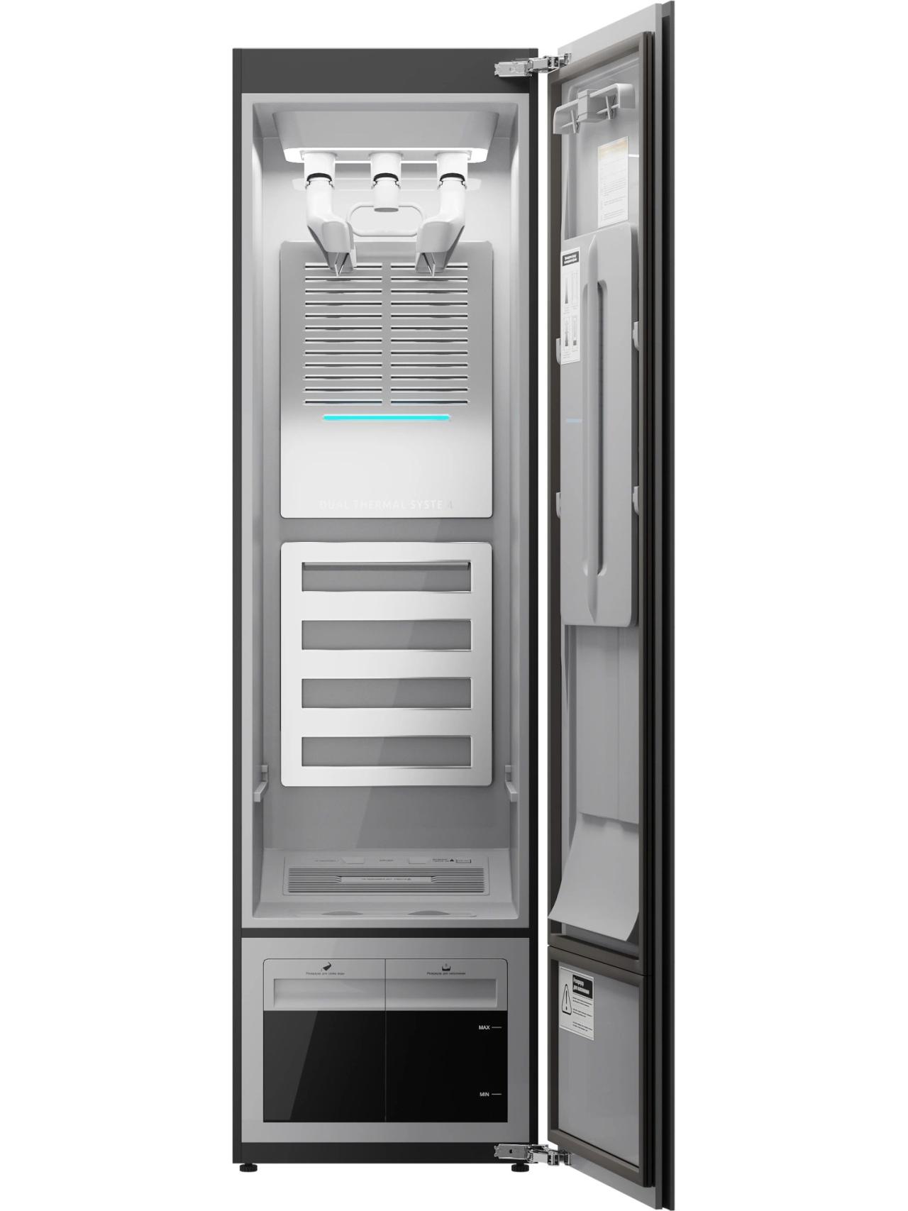 В основе — технологии, которые работают на комфорт каждый день: плазменная стерилизация помогает избавиться от бактерий и аллергенов, а конденсационная сушка с тепловым насосом бережно доводит вещи до нужной сухости без пересушивания. Пар подаётся на уровне волокон через воздушные вешалки, обволакивает ткань изнутри и снаружи и разглаживает сложные участки.