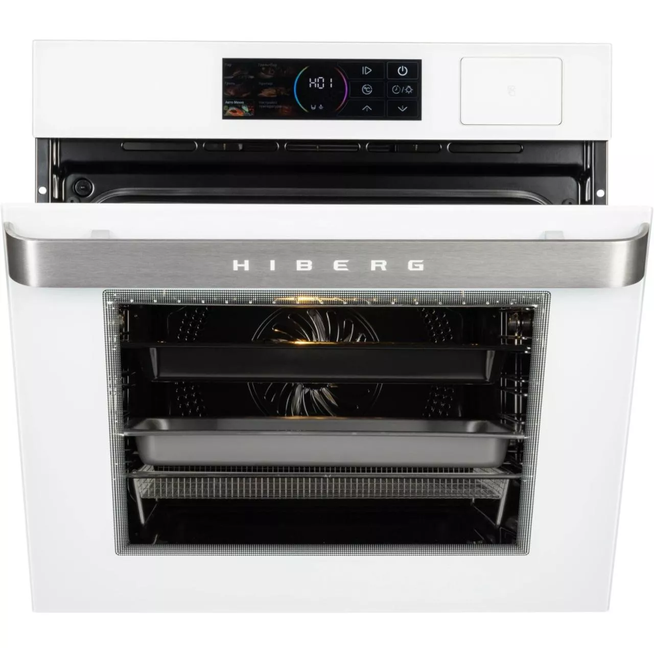 Встраиваемый электрический духовой шкаф HIBERG S-VM 6415 W SMART создан для тех, кто ценит удобство и стиль на кухне. Белый стеклянный фасад и цветной LED-дисплей с сенсорным управлением помогают быстро задать нужные параметры и контролировать процесс приготовления, не перегружая пространство визуально.