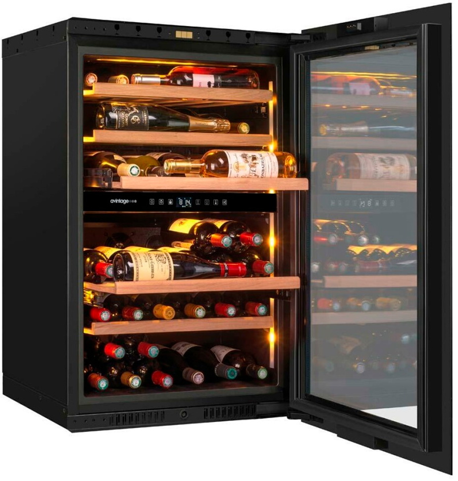 Позволяют задать нужную температуру для хранения вина разных видов. Разделение общего пространства на две зоны обеспечивает сохранность вкусовых качеств напитков. Общая рабочая температура — от 5°С до 20°С.